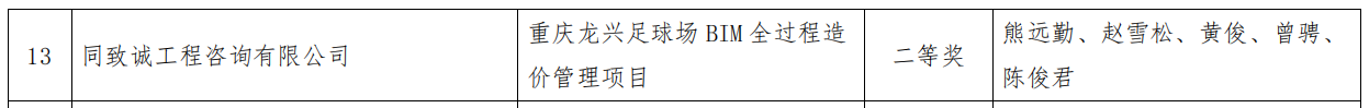 “重庆龙兴足球场BIM全过程造价管理项目”荣获综合BIM技术应用二等奖