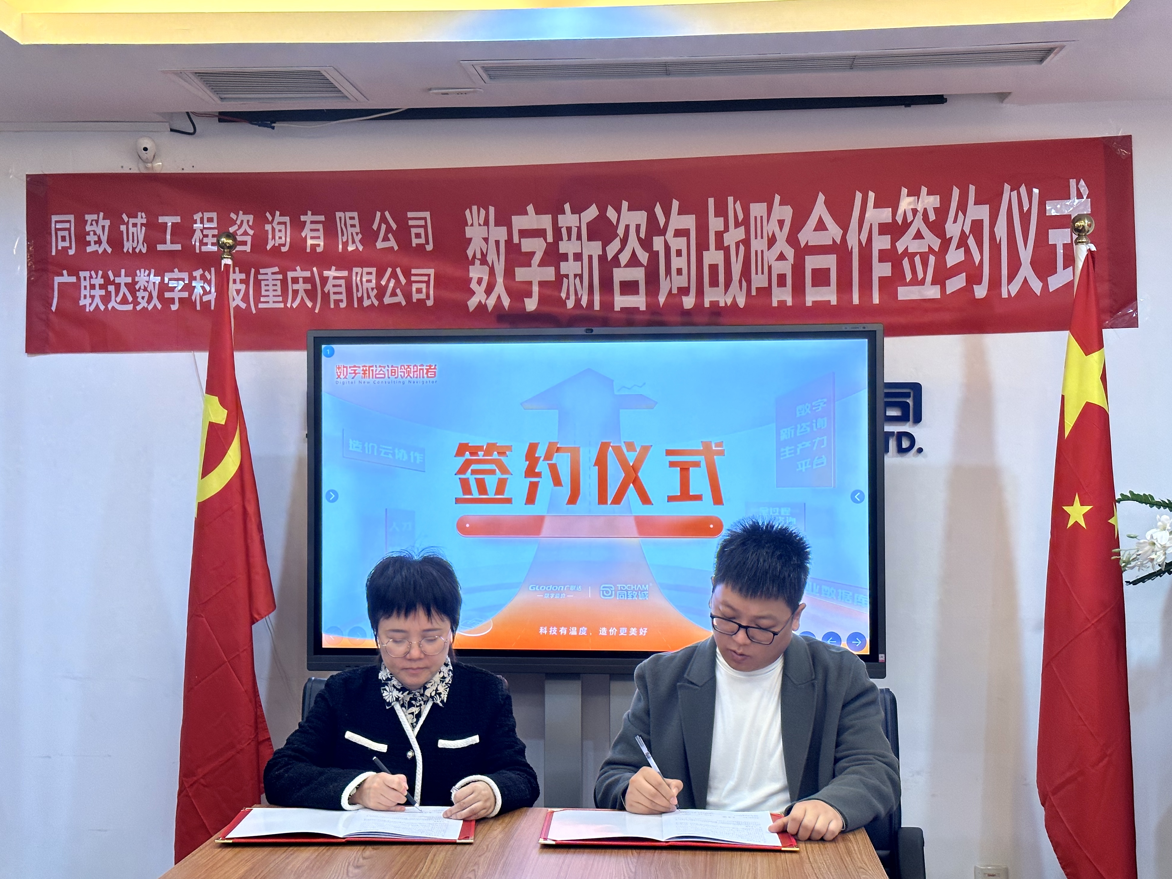 同致诚总经理吴咏梅与广联达重庆分支总经理王鹏共同签署合作协议