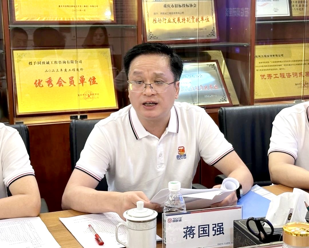 紧接着,同致诚公司总工程师、副总经理、党支部纪检委员蒋国强代表公司从“企业基本情况、当前业务调整策略及挑战、企业信息化运用、对当前监理行业现状及发展趋势的看法建议”等7个方面作汇报。他提到,公司自成立以来,始终坚持“诚信、诚心、诚恳、同进、同享、同赢”的经营理念,致力于为客户提供优质的工程咨询服务。在业务开展过程中,公司不断加强技术创新和人才培养,积累了丰富的项目经验,在多个领域打造了一批具有代表性的优质工程,赢得了客户的广泛认可和好评。面对项目减少、激烈的市场竞争,民营企业生存空间越来越小的挑战,公司坚持“走出去”和“多元化”发展战略,积极拓展全国市场,布局全过程工程咨询,深化BIM技术运用,提升服务效能,以创新驱动应对行业变革。同时希望协会继续为会员单位提供技术支持和培训机会,加强与业主的沟通交流,及时督促各会员单位改进工作方式和方法,提高监理成效。