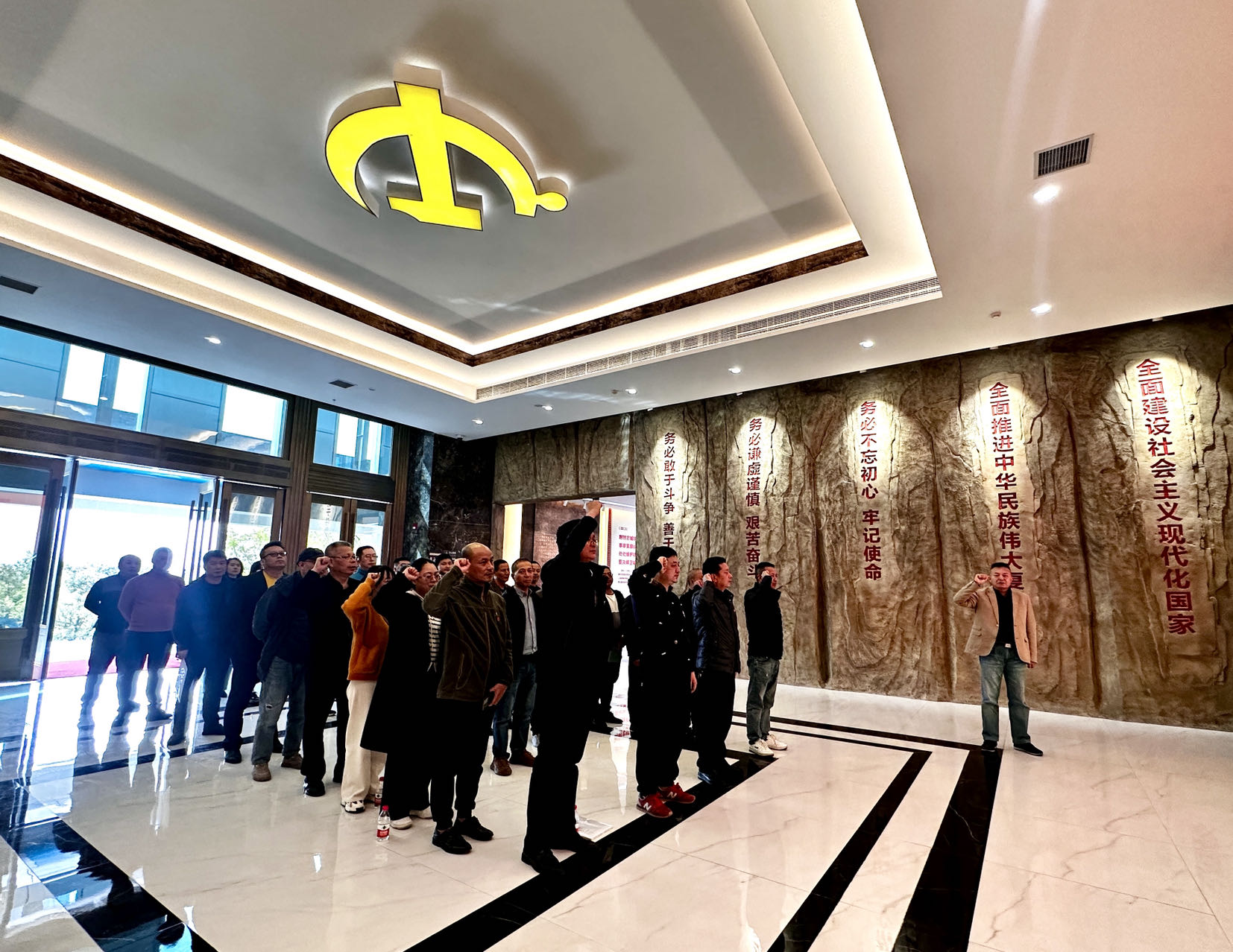 进入基地一楼序厅,全体人员认真聆听习近平总书记的告诫,党员同志面对党旗举起右拳重温入党时的庄严承诺,誓言铿锵有力,振奋人心。