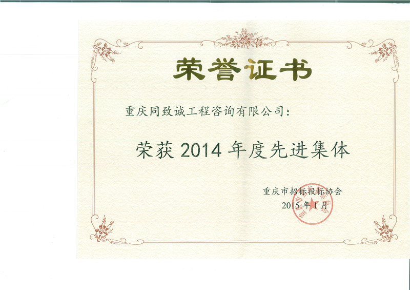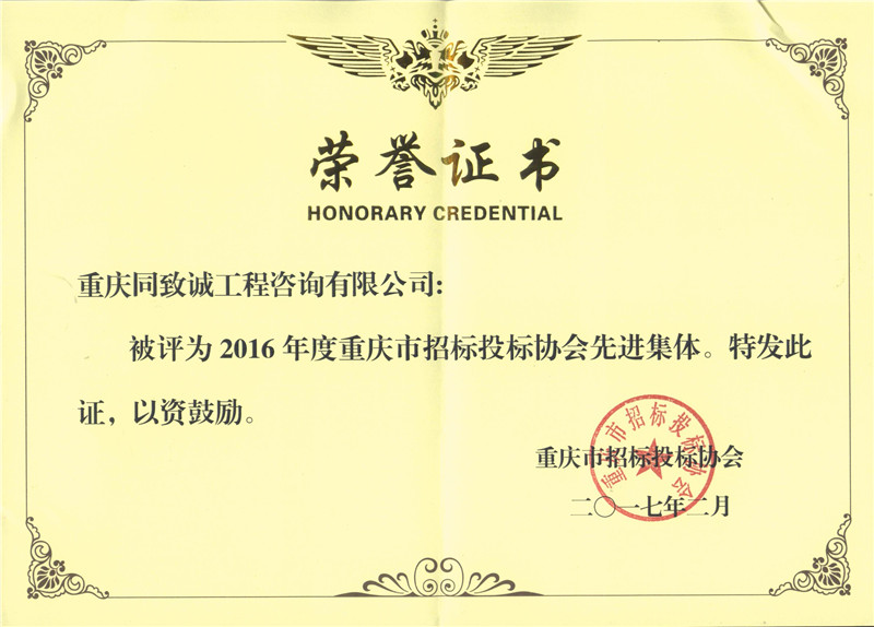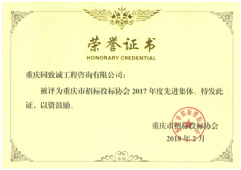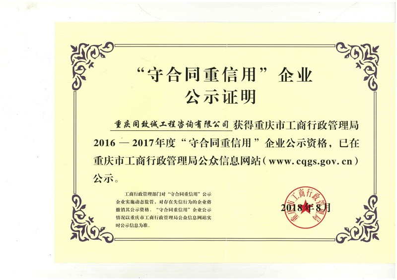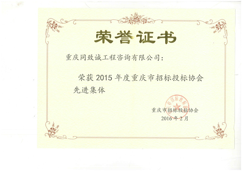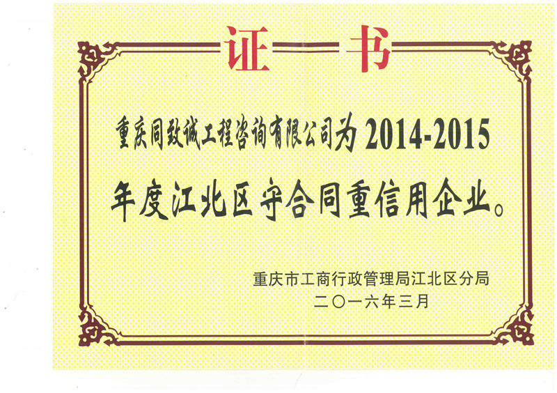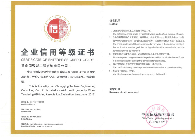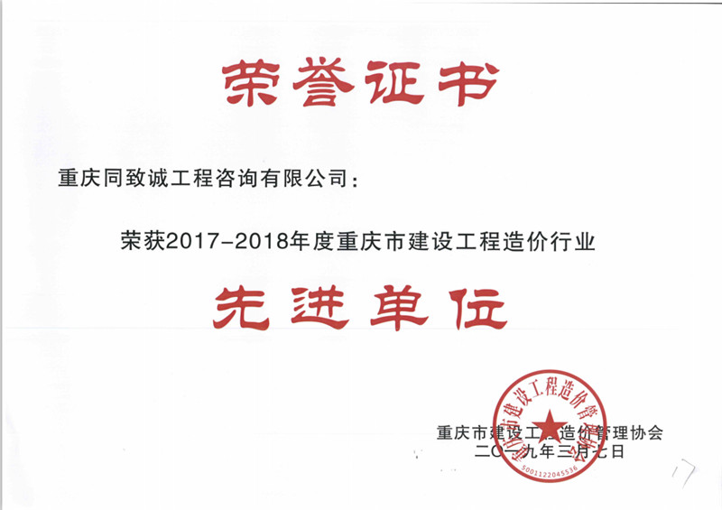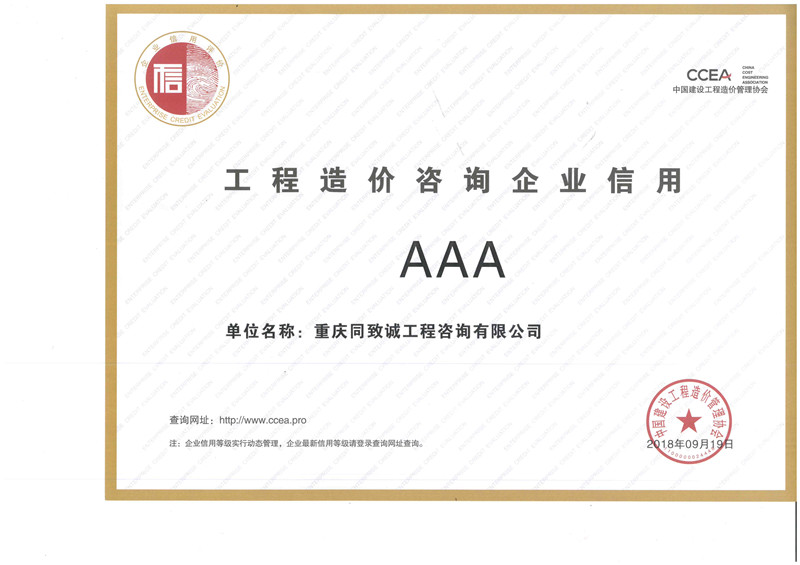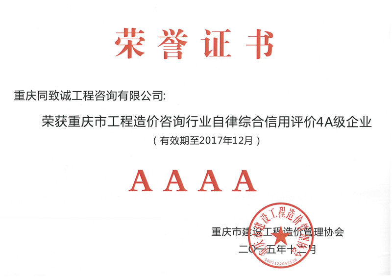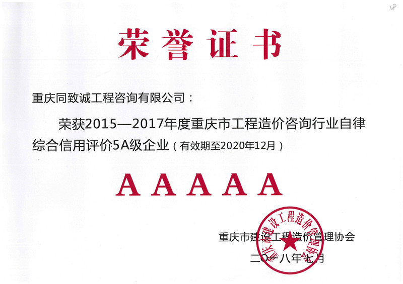 2015年-2017年度重庆工程造价咨询综合信用5A单位