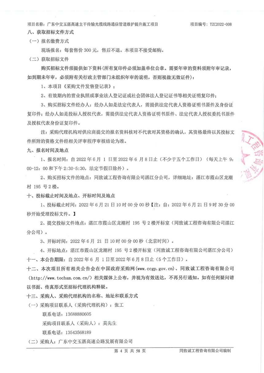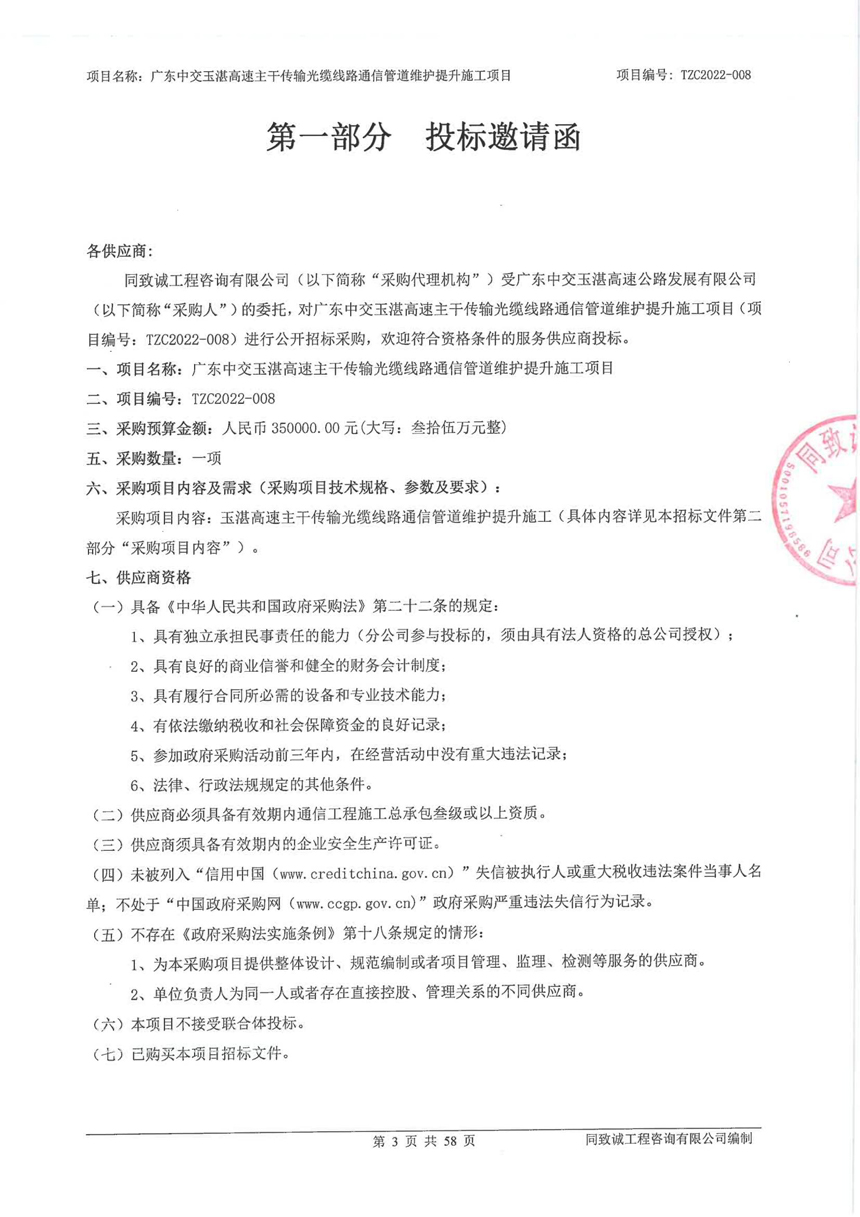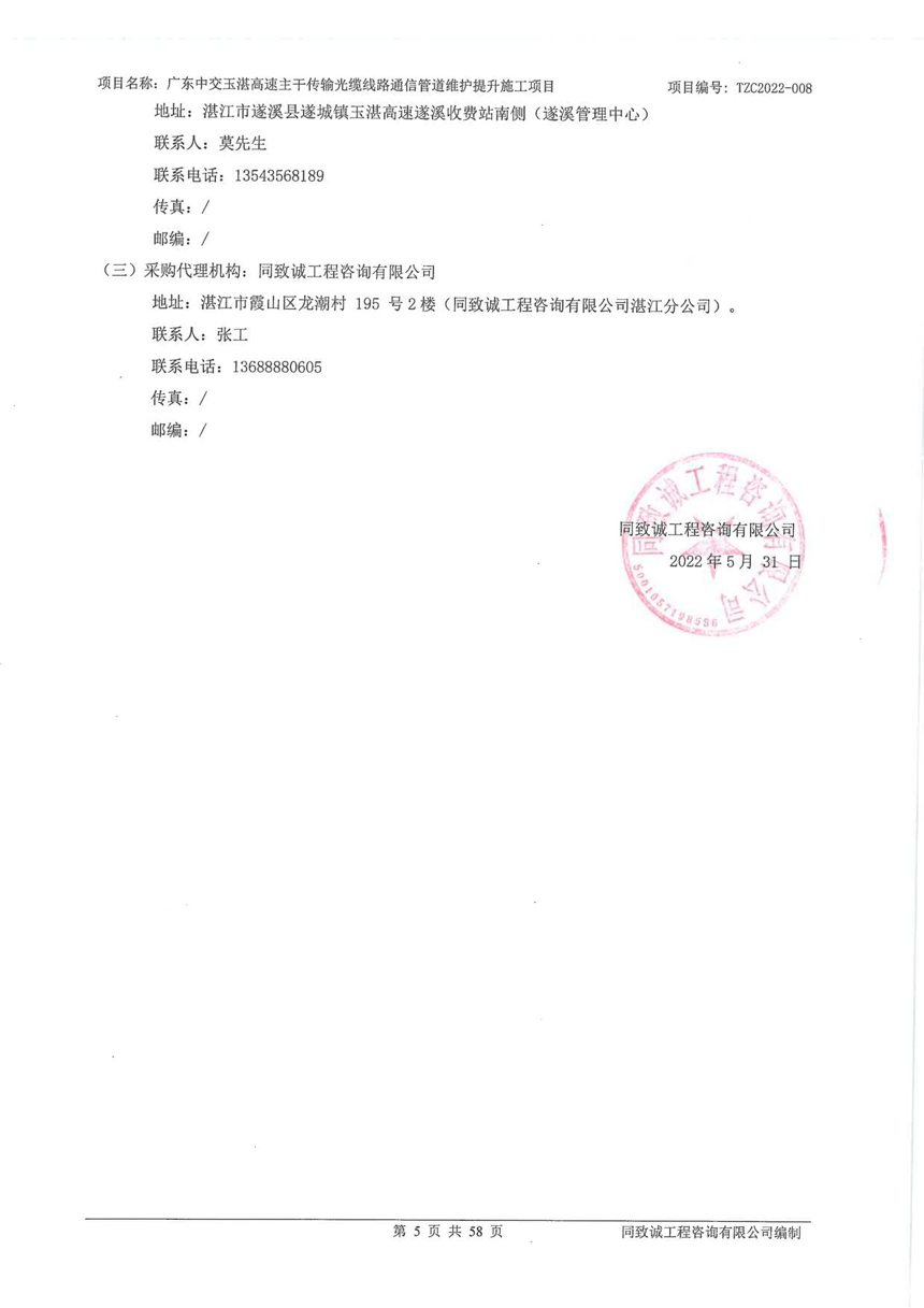 广东中交玉湛高速主干传输光缆线路通信管道维护提升施工项目