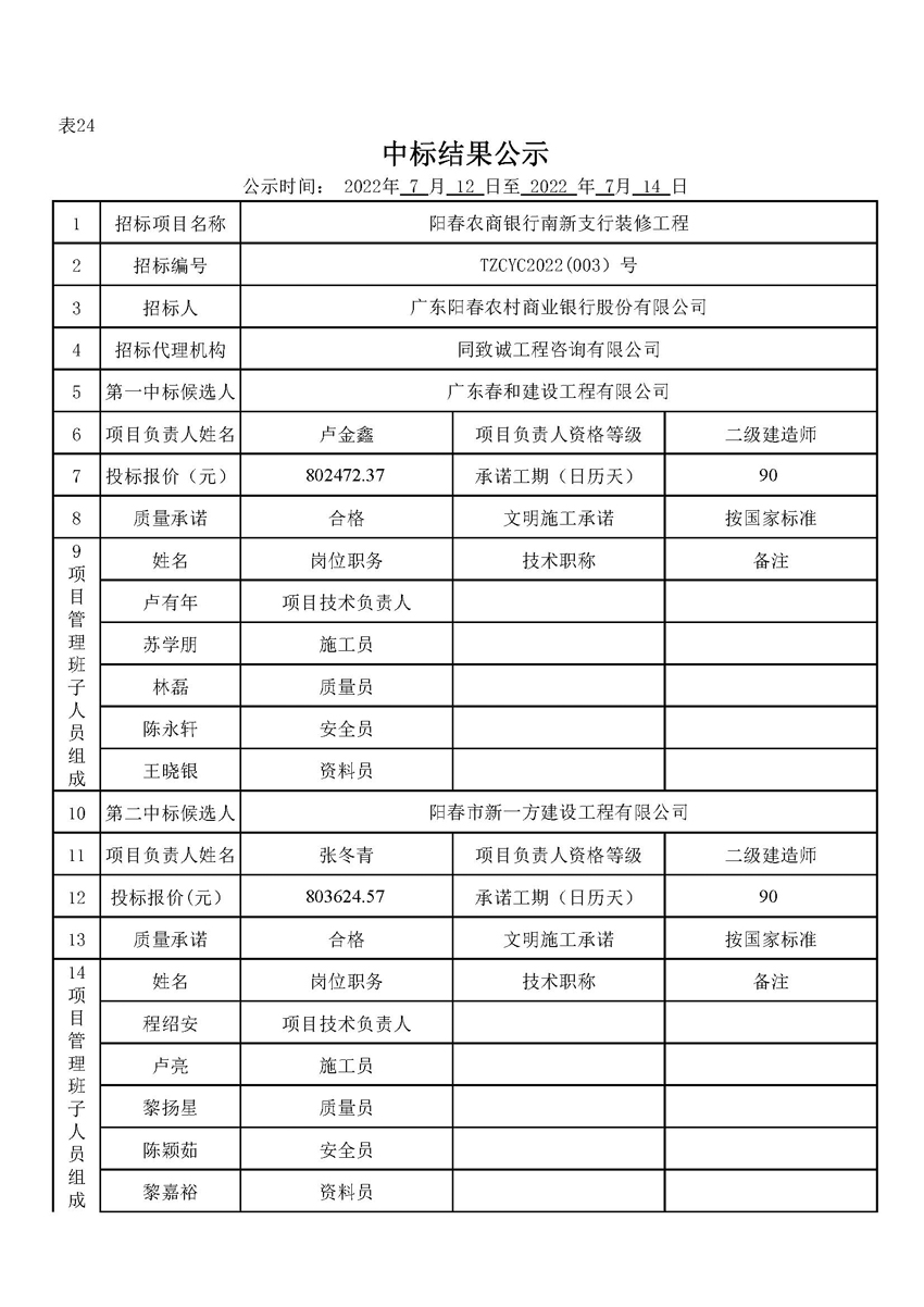 阳春农商银行圩镇分理处(拟更名为轮水分理处)装修