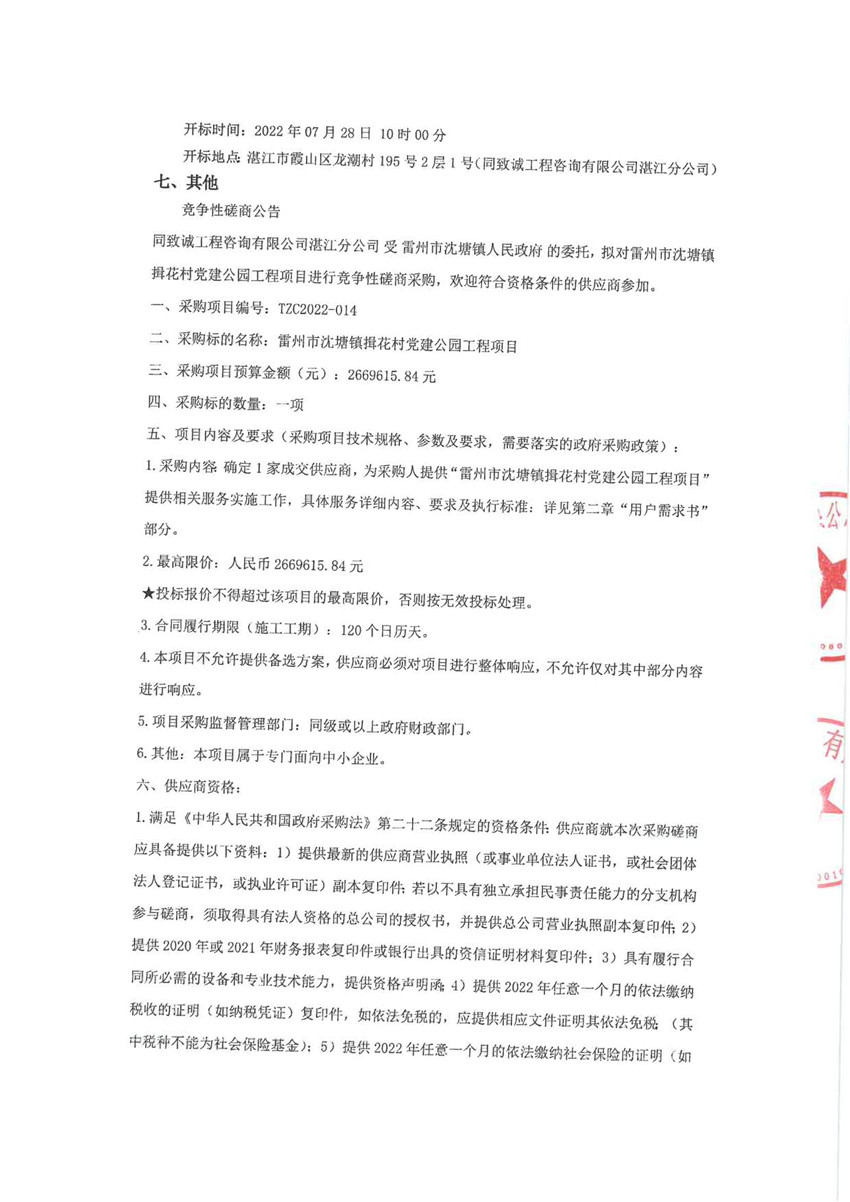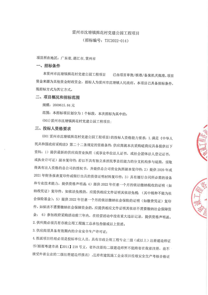本雷州市沈塘镇揖花村党建公园工程项目