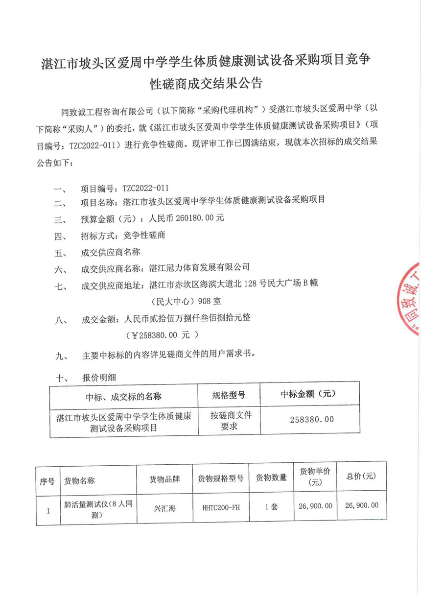 湛江市披头区爱周中学学生体质健康测试设备采购项目