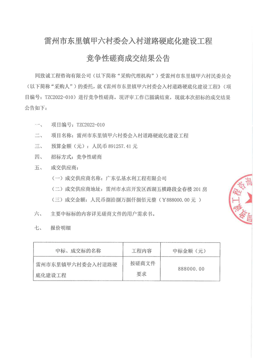 雷州市东里镇甲六村委会入村道路硬底化建设工程