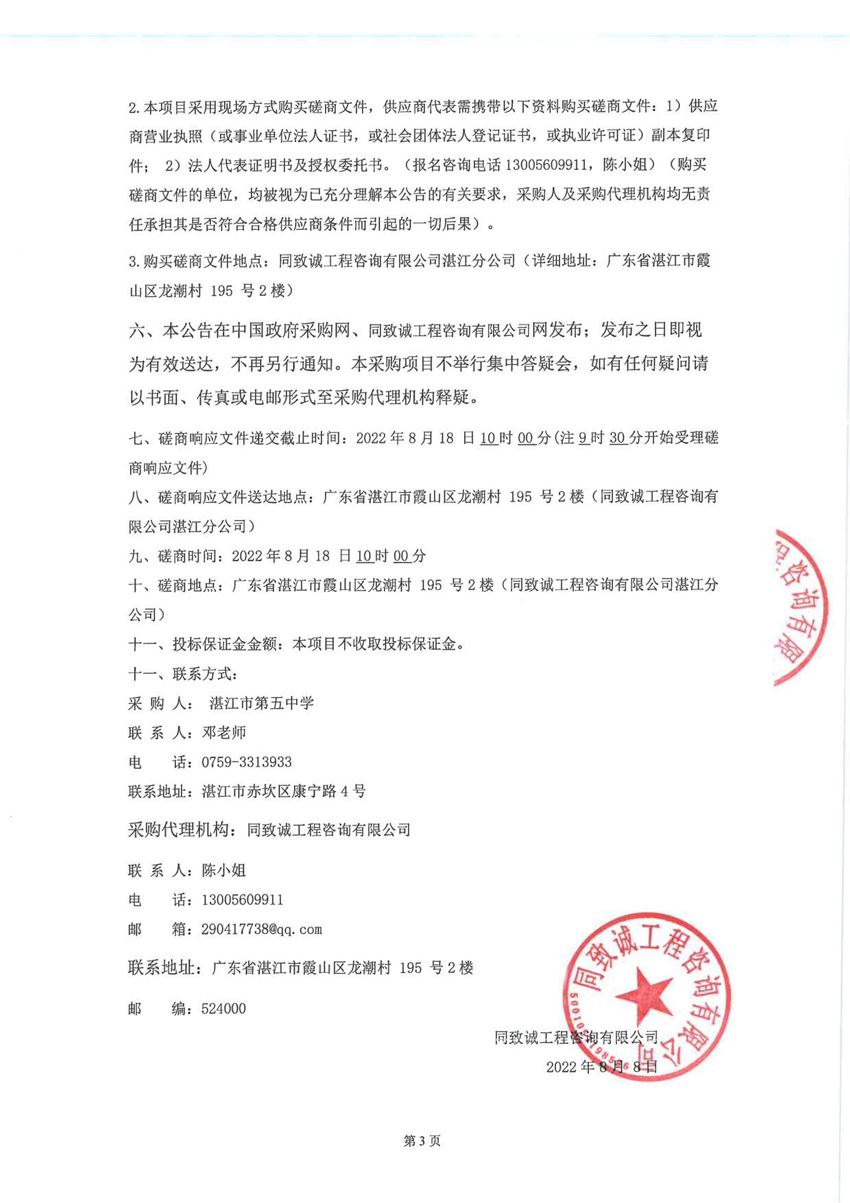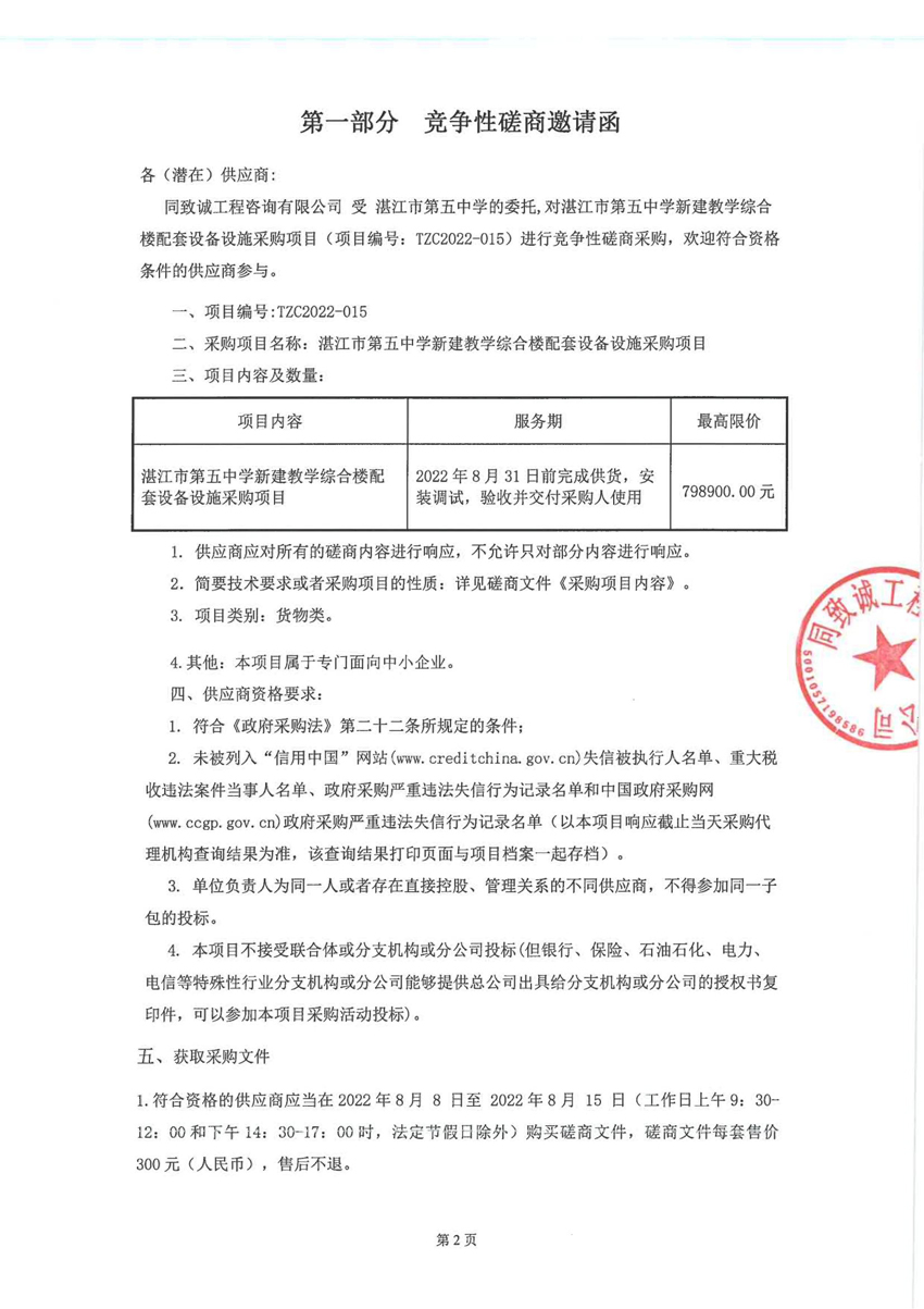 湛江市第五中学新建教学综合楼配套设备设施采购项目