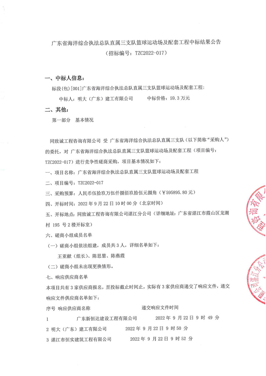 广东省海洋综合执法总队直属三支队篮球运动场及配套工程