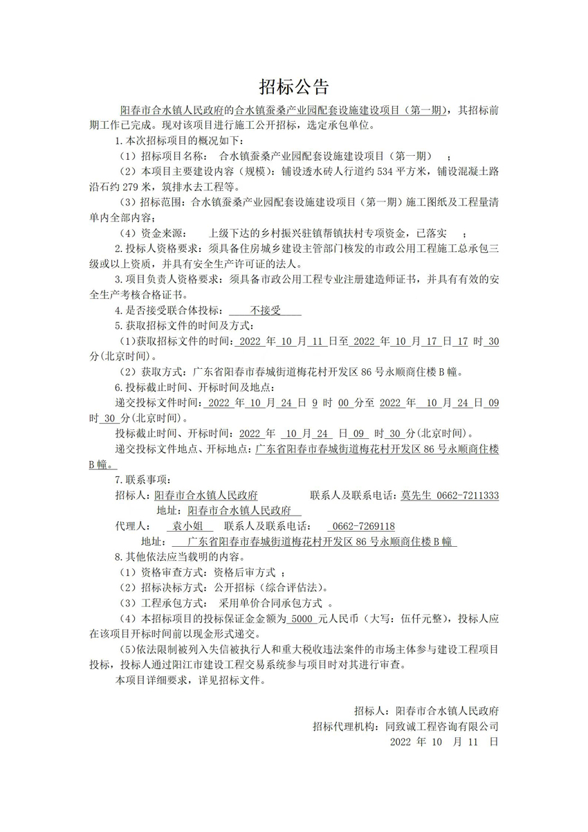 合水镇蚕桑产业园配套设施建设项目(第一期)