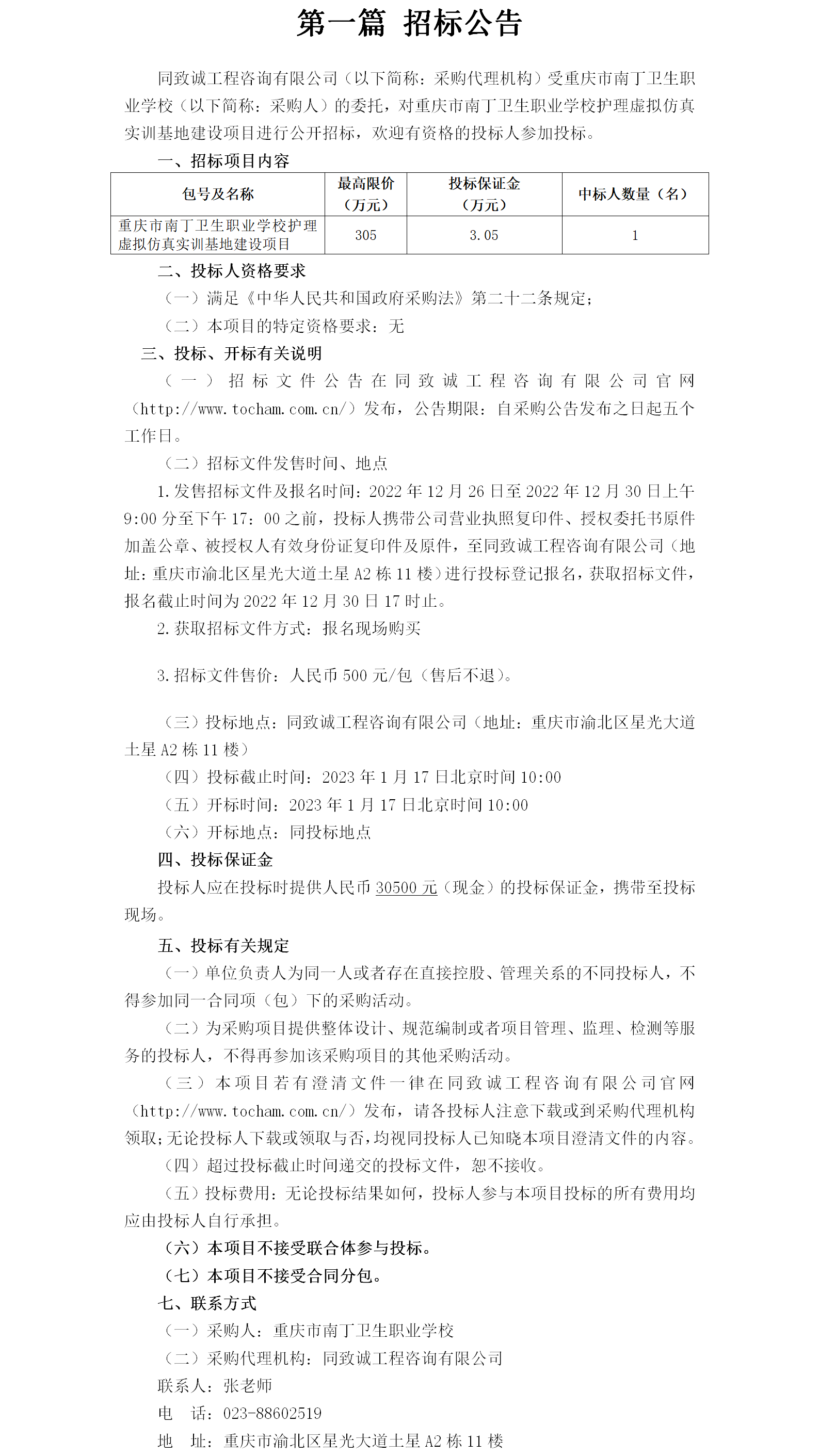 重庆市南丁卫生职业学校护理虚拟仿真实训基地建设项目