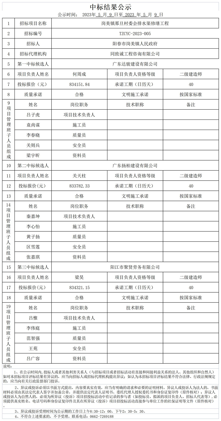 >> 中标公示