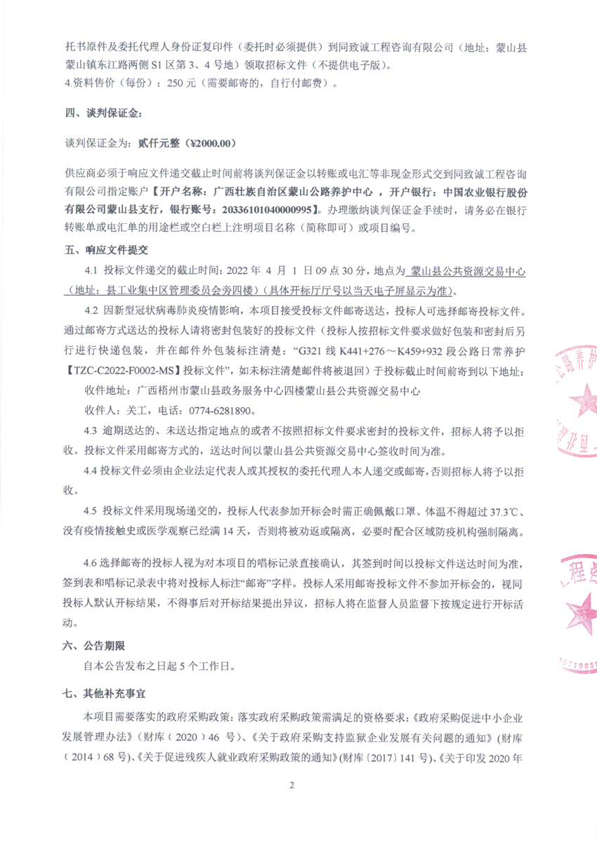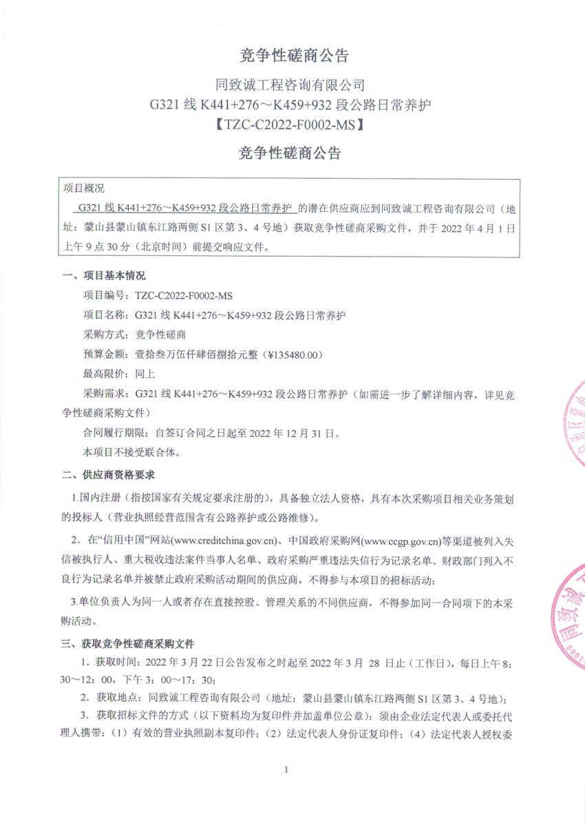 G321线K441+276~K459+932段公路日常养护磋商公告